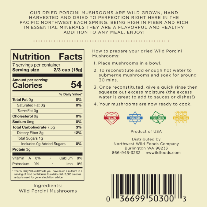 Porcini mushrooms, aka. king boletus or sep mushrooms are one of the most sought after mushrooms around. Originally popularized in Italy, porcini mushrooms grow all around the world. Our dried porcini mushrooms all are handpicked and sun dried right here in the forests of the Pacific Northwest. Porcini mushrooms gain taste as they are dried giving them unparalleled flavor that works well in many dishes including chicken, pork and many pasta dishes. Our dried porcini mushrooms are beautiful in color and come in nice solid pieces to work with. Enjoy this truly delightful flavor in your next meal.
