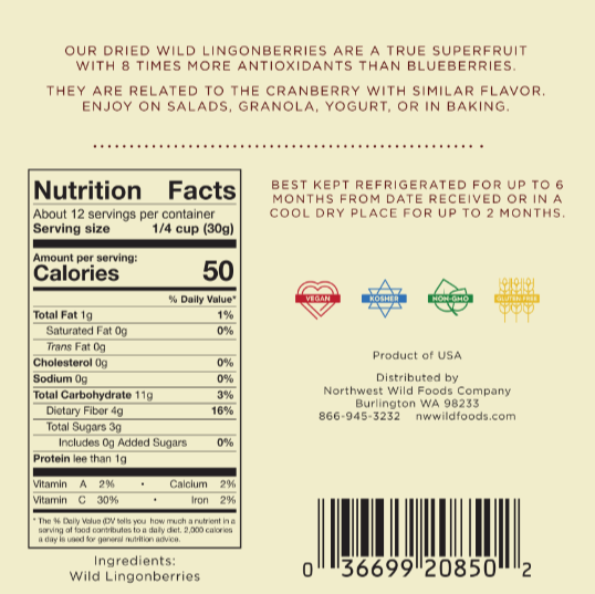 Our dried wild lingonberries are dried carefully and naturally without added sugars or oils. It’s 100% fruit. Dried wild lingonberries are some of the best tasting and healthiest foods on the planet. They have an excellent flavor and color similar to that of dried cranberries but are much smaller in size. Lingonberries are a true super-fruit that grow wild throughout Scandinavia. Commonly used as natural medicine for thousands of years in Europe, lingonberries are a deliciously healthy food that Americans are just starting to catch on to. Dried lingonberries can be substituted into any recipe that calls for dried cranberries. Lingonberries acidity allows them to keep extremely well making them very versatile. They are all natural, maintaining the greatest flavor, color and health benefits to you. Try one of the most antioxidant rich foods on the planet today.