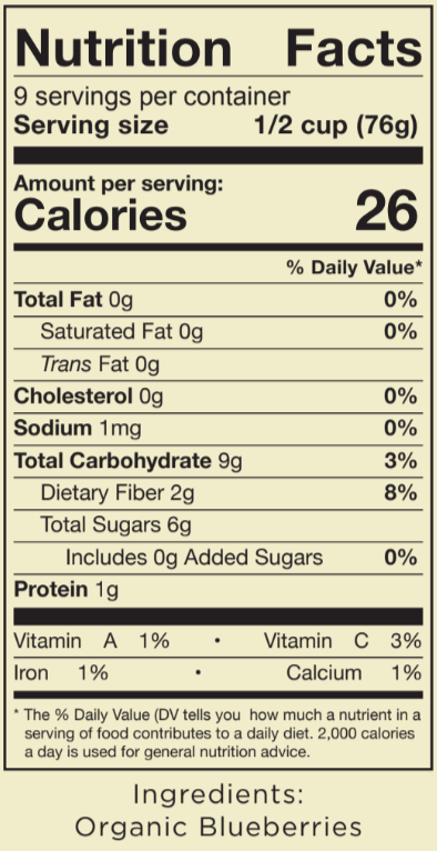 - Raw freshly frozen organic blueberries- Grown in Washington State
