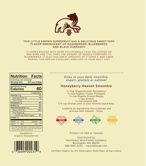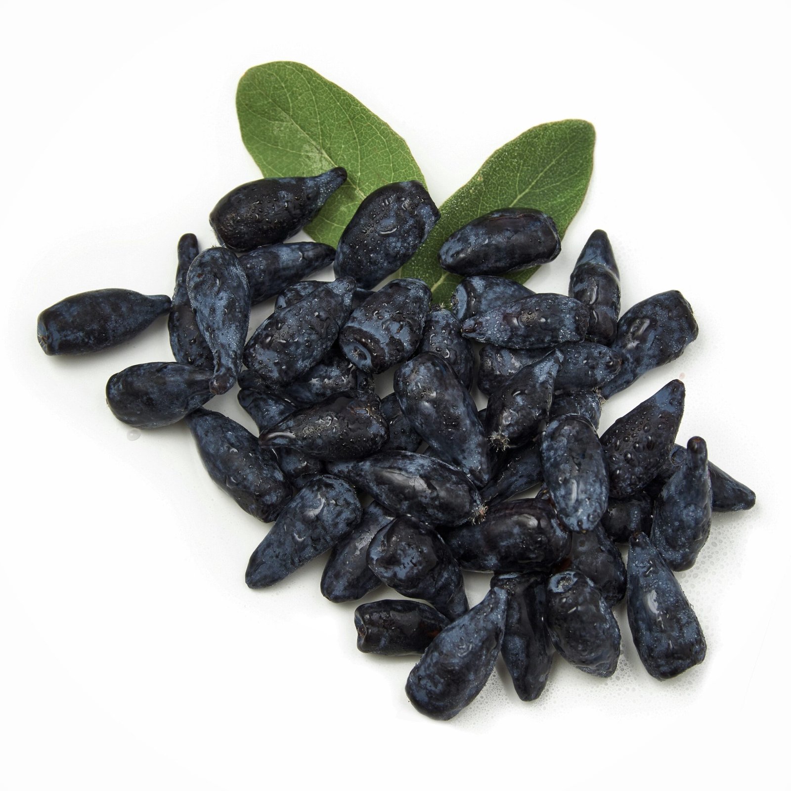 This little known super fruit has a delicious sweet-tart flavor reminiscent of red raspberries, blueberries, saskatoons and black currants. It comes packed with more polyphenols than tea, coffee or red wine and five times the amount of phenols compared to blueberries. It also has great amounts of Vitamin C and fiber making this little gem is an excellent addition to your daily diet as well as a tasty snack straight out of the bag. Honeyberries are a non-climbing honeysuckle native to cooler areas in the Northern Hemisphere such as Canada, Japan, Russia, and Poland. The native Ainu people of Japan call the honeyberry hasukappu which translates to “a bunch of little presents at the top of the branches” and they are thought of as the ‘fruit of longevity.’ These tasty berries are an excellent substitute for blueberries in most recipes and make great pies, jams, tarts and smoothies to name a few. Enjoy!