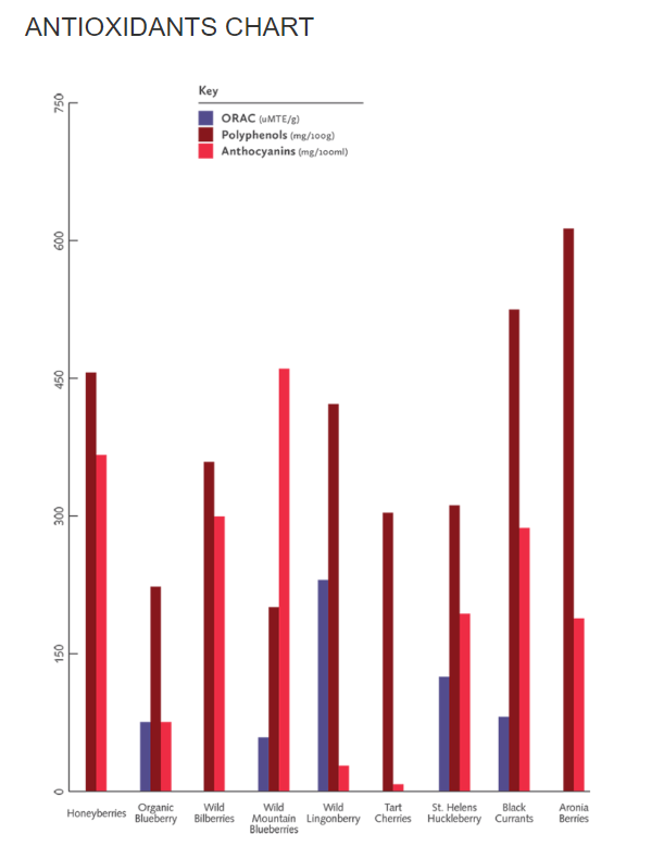 - Honeyberries have more polyphenols than tea, coffee, and red wine and five times the amount of phenols compared to blueberries