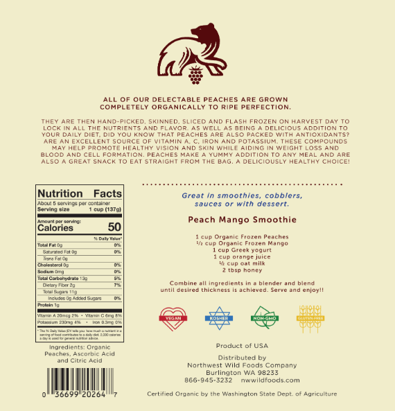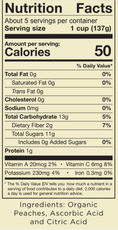- Raw fresh frozen organic peaches, citric acid