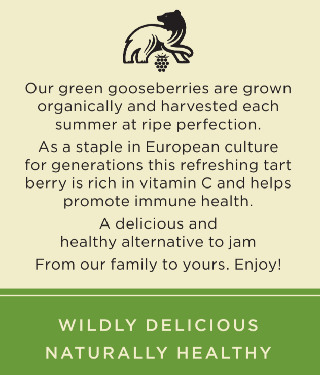 Green gooseberries have been a popular staple throughout Europe for generations, highly prized for their great health benefits and distinct flavor. Our green gooseberry fruit spread is made with gooseberries that are grown completely organically in a hands-on process without the use of harmful chemicals and sprays. Each berry is grown organically, picked at peak ripeness and then carefully made into small artisan batches of zesty and delicious spreads. With 50% less sugar than traditional jams our spreads are not only the healthier option but the tastier one as well. Give a unique and tasty gift to friends and loved ones, or enjoy a jar for yourself. Our fruit spreads are a great choice for any occasion. Of course our green gooseberry fruit spread goes great on a piece of toast but there are also many other exciting and versatile ways to enjoy it. Try putting a dollop on your baked brie, a spoonful on your ice cream or cheesecake or even add a little to your cocktails. There really is no wrong way to enjoy this spread!