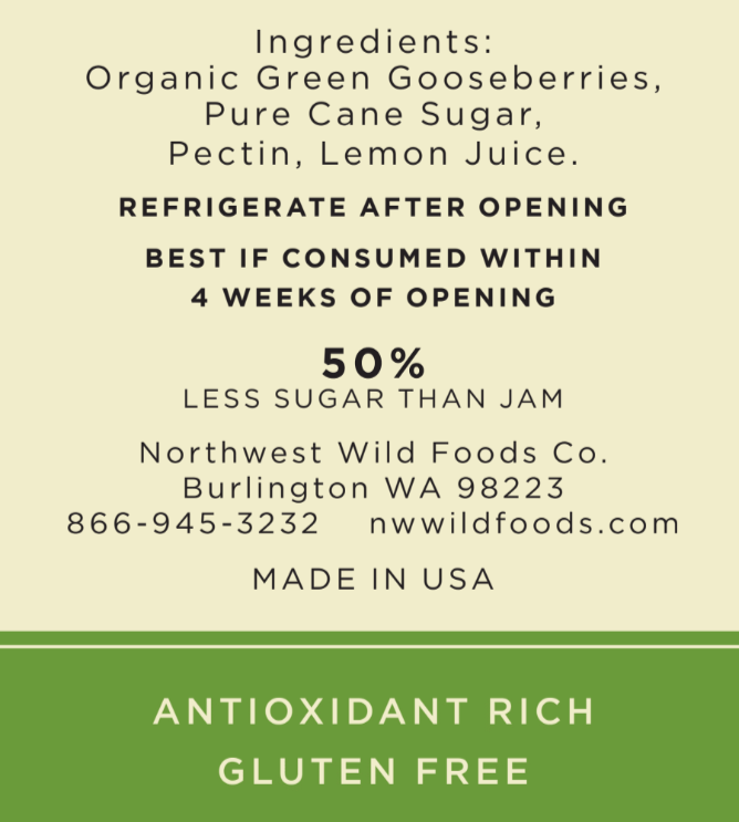 Ingredients: Organic Green Gooseberries, Pure Cane Sugar, Fruit Pectin, Lemon Juice