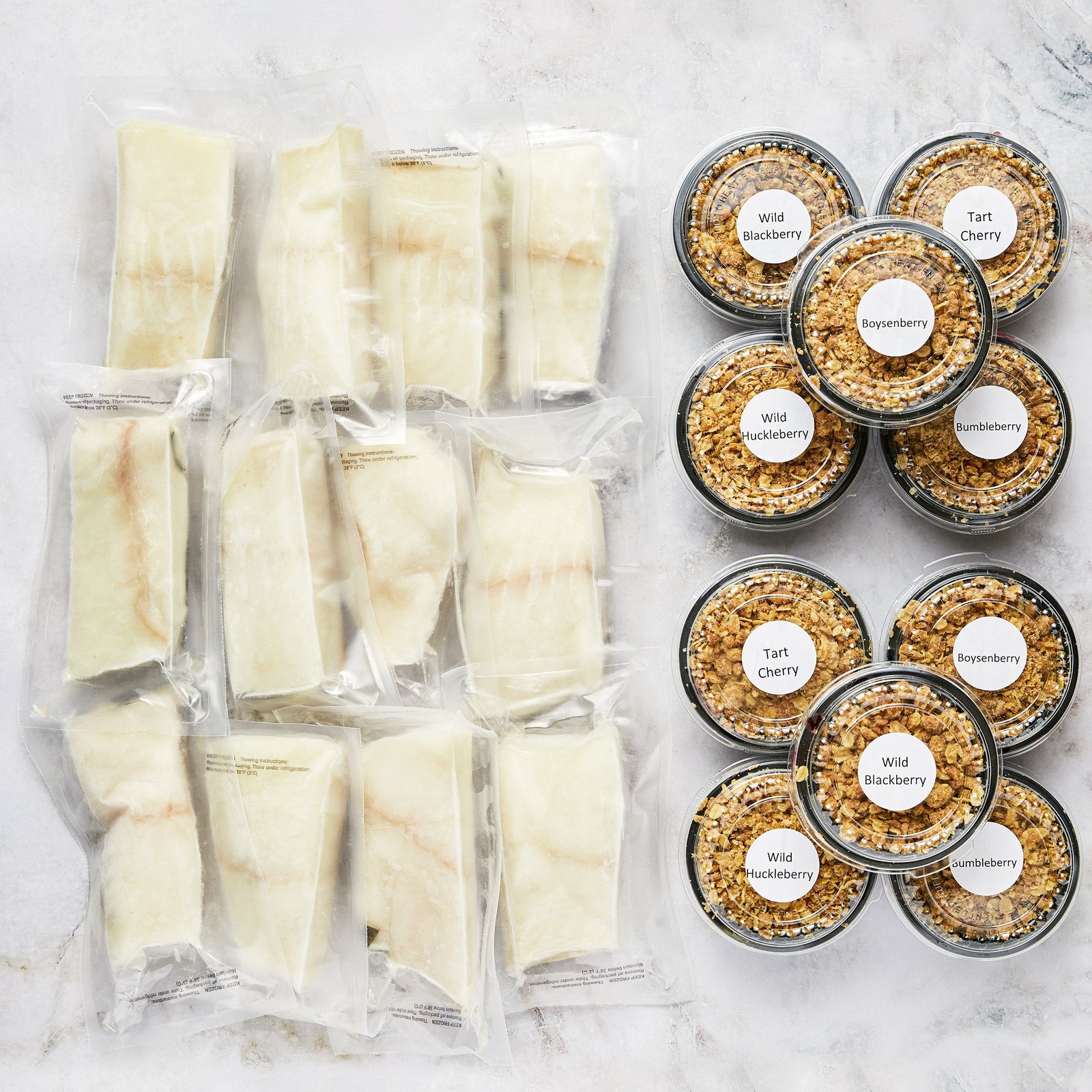 Your next dinner party will be easy and delicious with our new dinner party box. You will receive 2 fish boxes and 2 cobbler sampler boxes. Makes a great gift!