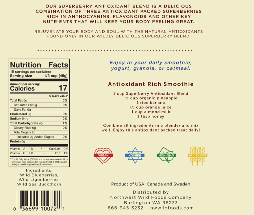 Check out this great extra info! https://nwwildfoods.com/blog/antioxidants-in-berries-may-help-reduce-cancer/ https://nwwildfoods.com/blog/lingonberries-a-true-super-fruit/ https://nwwildfoods.com/blog/antioxidant-levels-in-berries/ https://nwwildfoods.com/blog/currants-the-unknown-super-food/