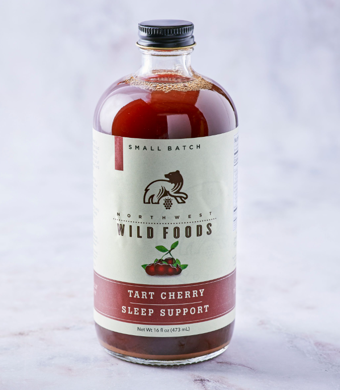 Tart Cherry Sleep Support- Organic Tart Cherry juice, honey, cinnamon, and dried chamomile flowers.