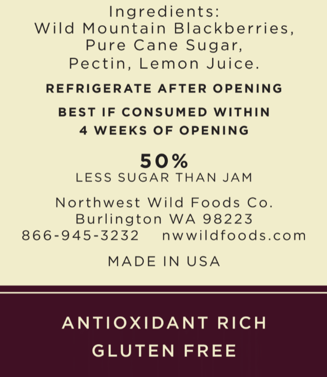 Ingredients: Wild Mountain Blackberries, Sugar, Fruit Pectin