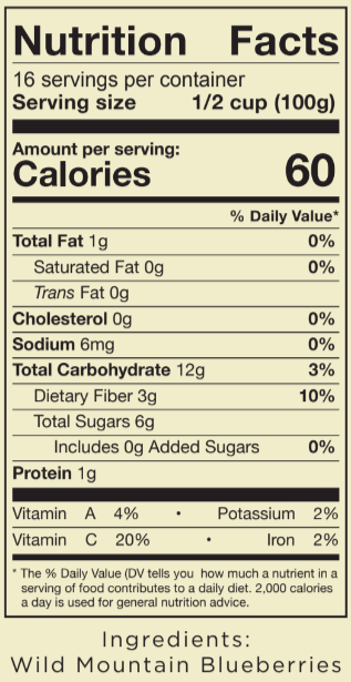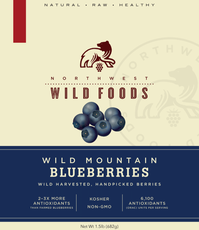 Our wild mountain blueberries grow naturally wild high in the foothills of the Pacific Northwest all the way up to Alaska each summer along side our wild mountain huckleberries. Frozen wild mountain blueberries are much smaller in size and possess a unique earthy, tart taste and flavor very different from our sweet tasting wild blue huckleberries or your traditional store bought wild blueberry. In addition to a wonderful full-bodied flavor, wild blueberries grow on low bushes that produce fruit with a slight white powder covering the berry. Wild mountain blueberries can range in color from sky blue to dark blue. Our wild blueberries are handpicked daily and flash frozen straight off the mountain to lock in their deliciously distinct flavor and aroma. Studies show this process also locks in the antioxidant value of the berry making these richer in antioxidants than most fresh blueberries. Wild mountain blueberries may not be as sweet as their domestic counterparts but they are richer in antioxidants and 100% spray free. Order our fresh frozen wild mountain blueberries online and have them shipped frozen to your door.
